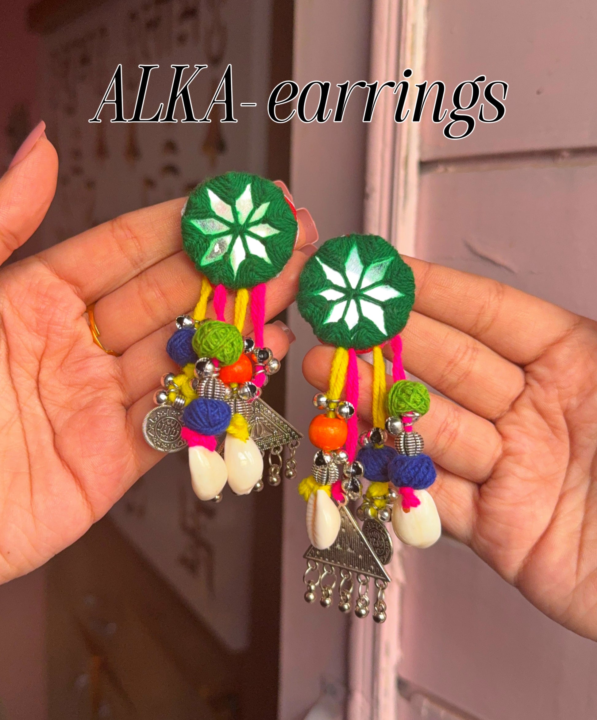 "I absolutely love how colorful and festive these earrings are! The mirror work and wool threads make them stand out perfectly with any ethnic outfit. A must-have for the upcoming festive season!"