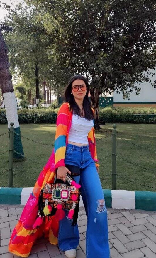 If you love boho fashion, this bag is a must-have. The mix of textures and colors is so creative. It pairs beautifully with solid outfits to add that perfect pop of fun!