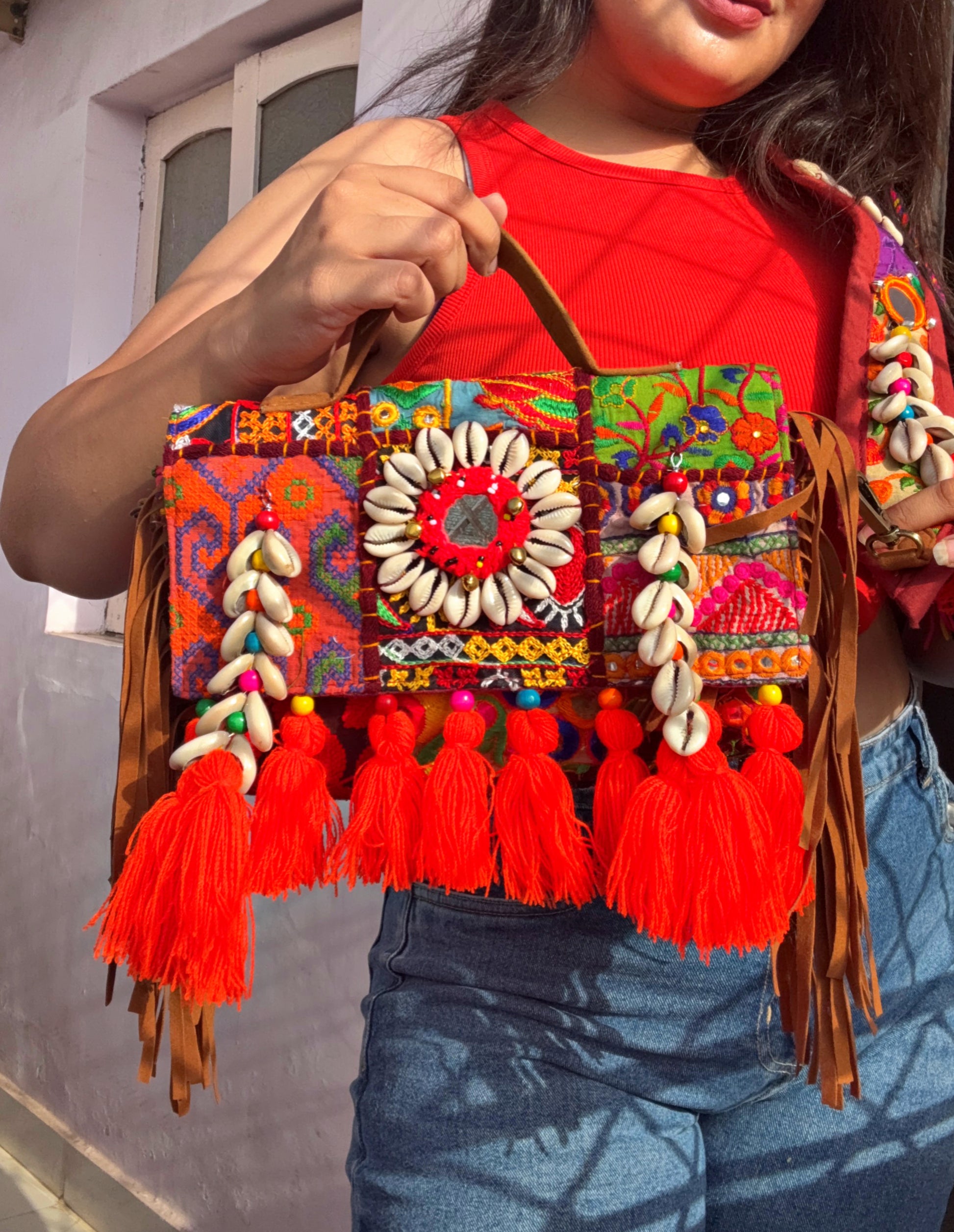 KESARI- Boho bag with heavy work belt🧡🧶✨