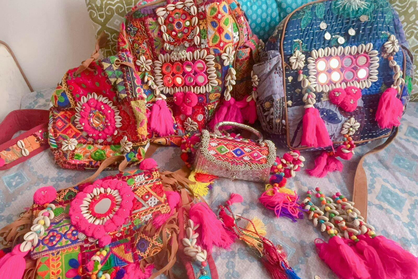 Crafted from gleaming brass, the clutch features a stunning Kutch work patch adorning its top. This intricate embroidery, meticulously created by skilled artisans, showcases vibrant colors and elaborate patterns, each stitch a testament to the rich cultural heritage it represents. Adding to its allure, the Mahisa Boho Brass Clutch is adorned with over 300 meticulously placed ghungroos (small bells), each one carefully stitched by hand. These ghungroos create a gentle, melodic chime with every movement, adding a touch of playful elegance to the design.