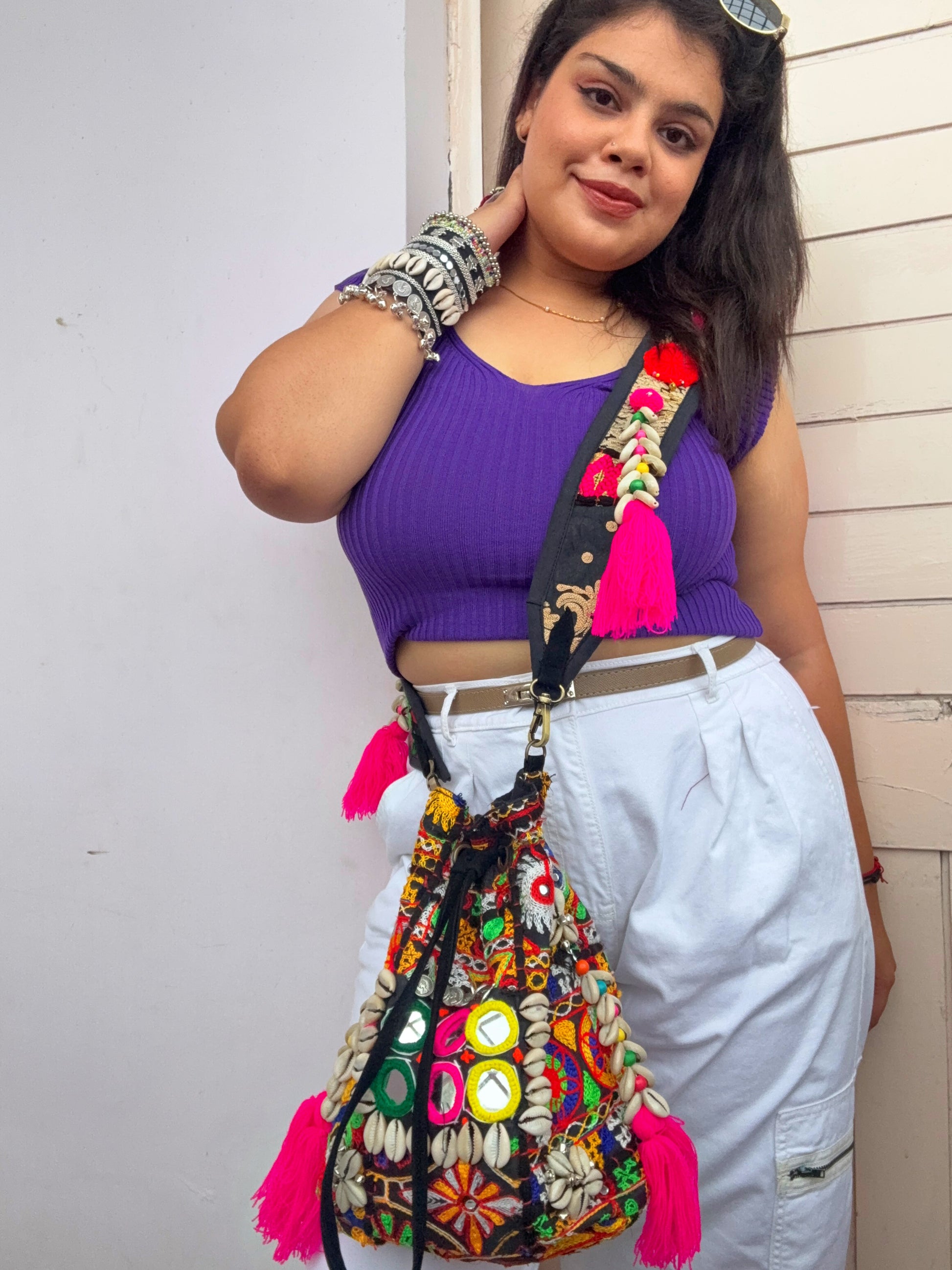 “This potli isn’t just for ethnic wear — I pair it with my jeans and crop tops too. It’s a quirky statement piece.”😄