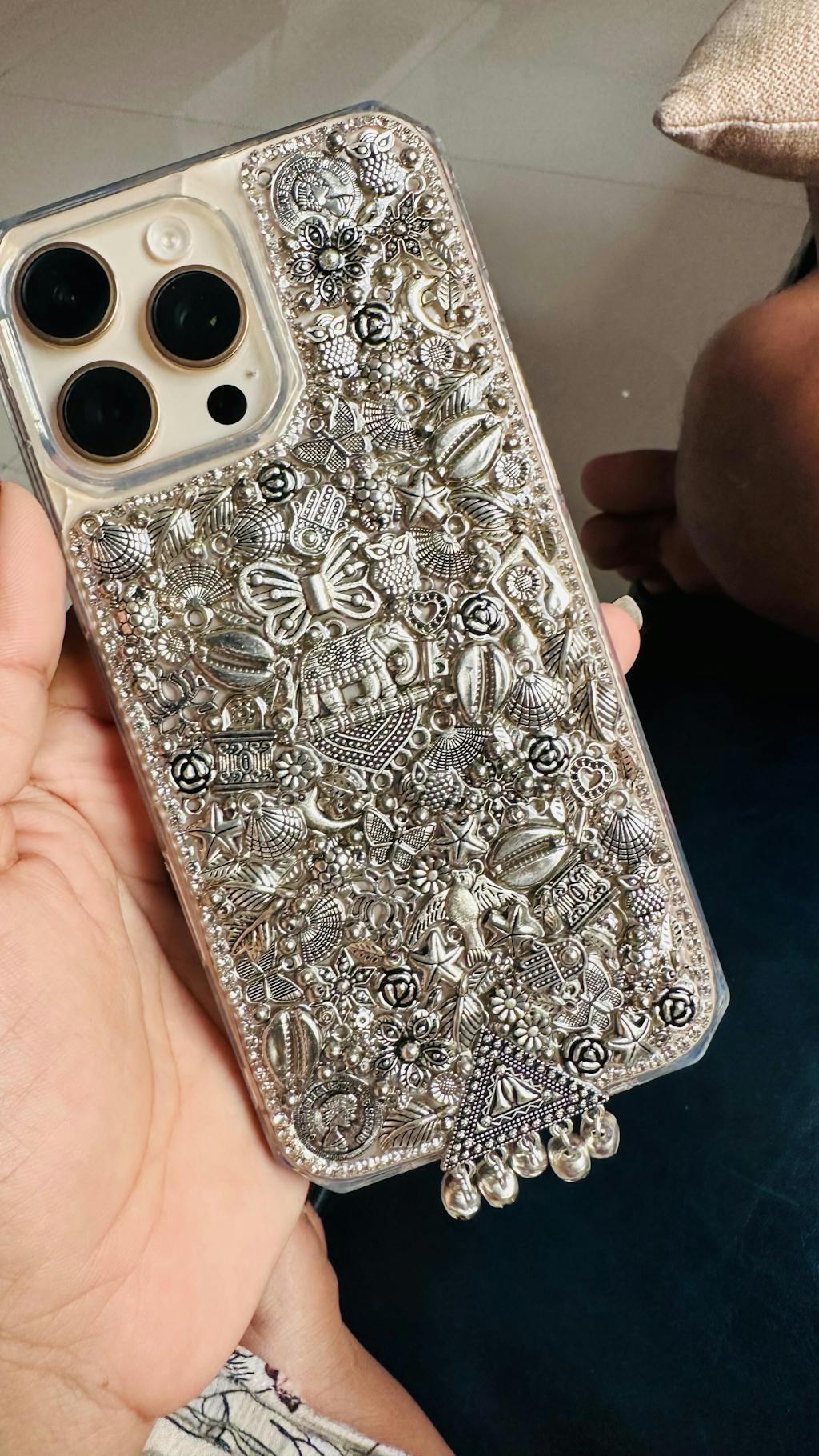 OXODIZED SILVER CHARM STUDDED PHONE case/ cover ( Whatsapp us with model for customisation )🌷