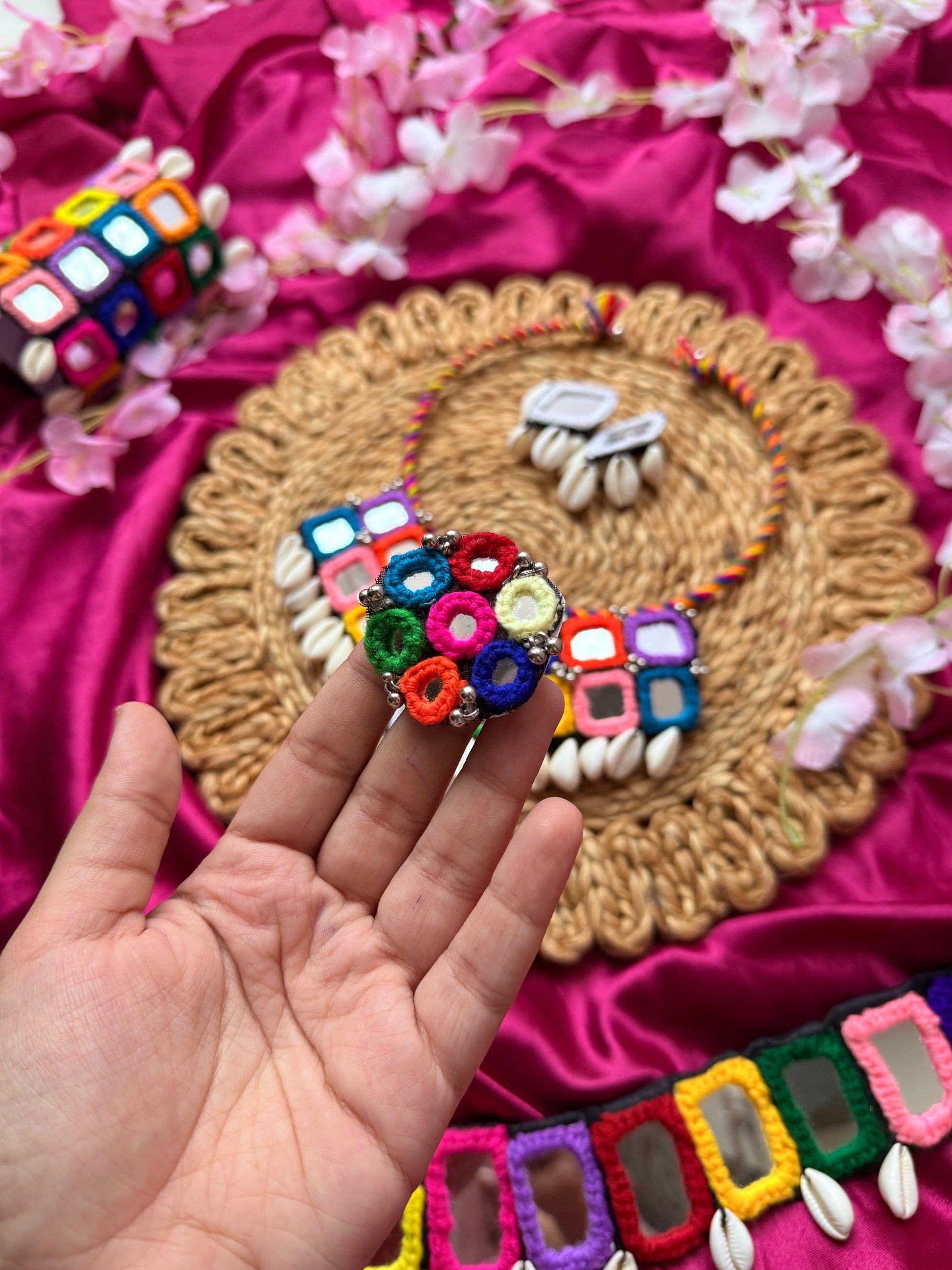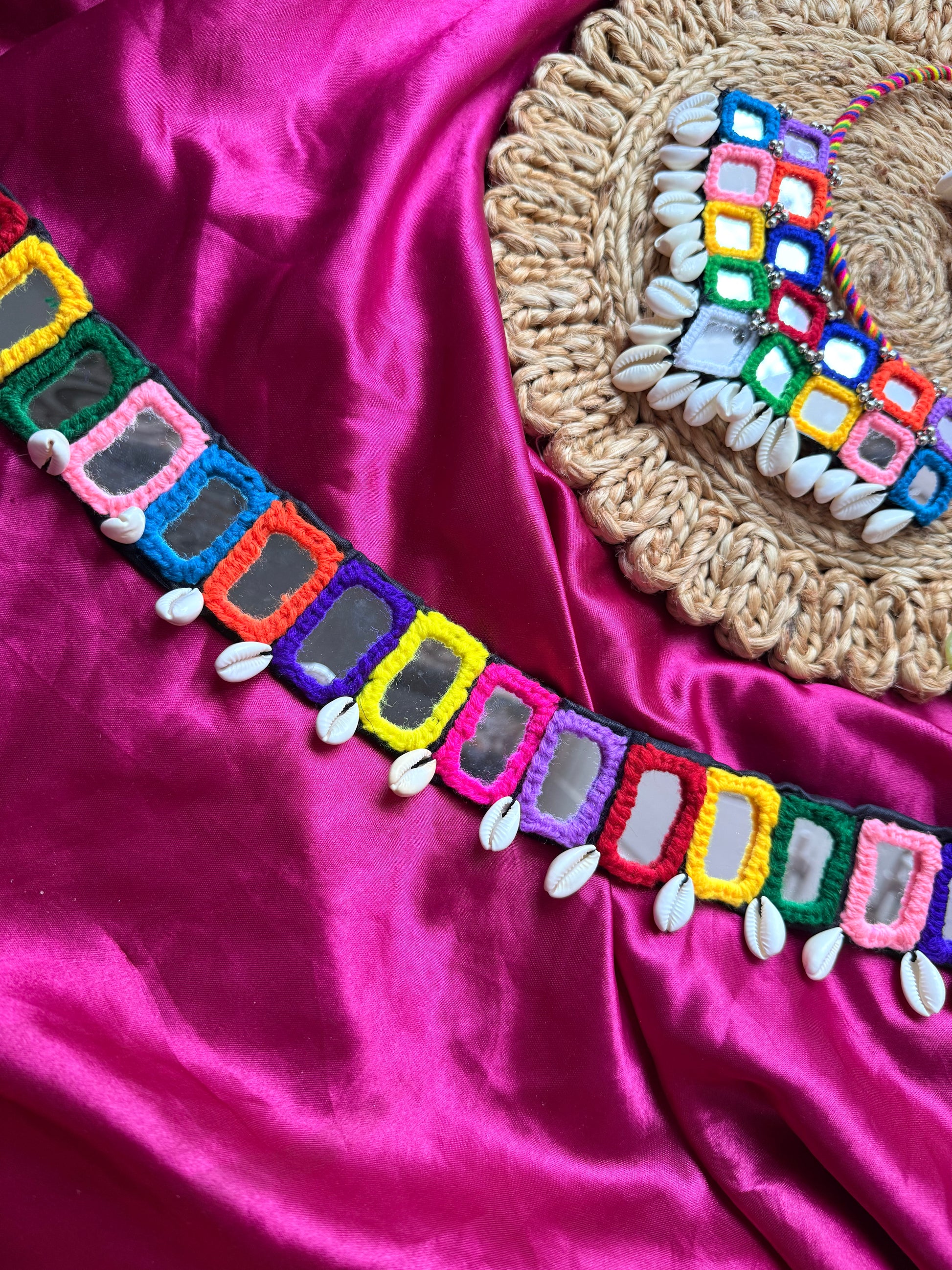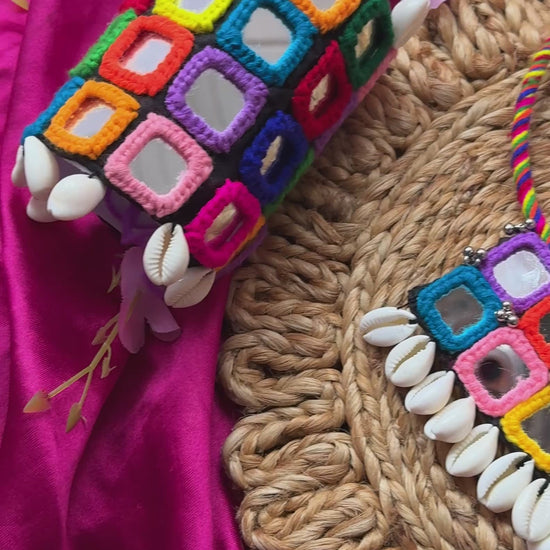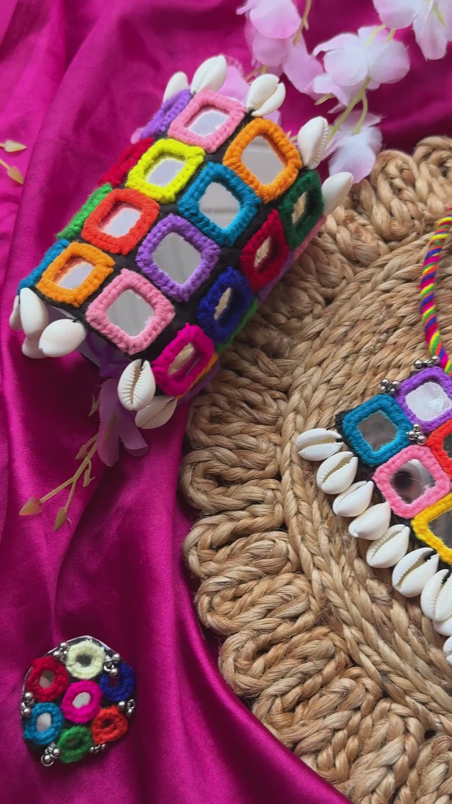 I'm in love with the colors and craftsmanship of this set! The mirror work shines beautifully, and the combination of shells adds a unique touch.